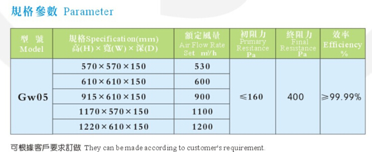 高效過濾器的使用壽命,建議空氣進(jìn)入前,需經(jīng)過不低于F8(比色法90-95%)的預(yù)過濾.