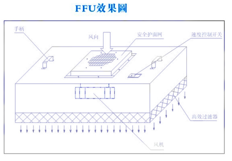 FFU中文專業(yè)用語為“風(fēng)機(jī)過濾機(jī)組”,FFU設(shè)有初、高效兩級過濾網(wǎng)。風(fēng)機(jī)從FFU頂部將空氣吸入并經(jīng)初、高效過濾器過濾,過濾后的潔凈空氣在整個(gè)出風(fēng)面以0.45M/S±20%的風(fēng)速均勻送出。適用于在各種環(huán)境中獲得高級別的潔凈環(huán)境。它為不同尺寸大小,不同潔凈度等級的潔凈室,微環(huán)境停共高質(zhì)量的潔凈空氣層流罩新產(chǎn)品是一種空氣自凈裝置,內(nèi)置有初、高兩級過濾,使局部凈化級別達(dá)到百級, 層流罩有內(nèi)接風(fēng)機(jī)和外接風(fēng)機(jī)兩種,安裝方式分懸掛支架兩種形式.。在新建潔凈室、潔凈廠房式改造翻新中,即可提高潔凈度級別,降低噪音和振動(dòng),也可大大降低造價(jià),安裝維護(hù)方便,是潔凈環(huán)境的理想部件。